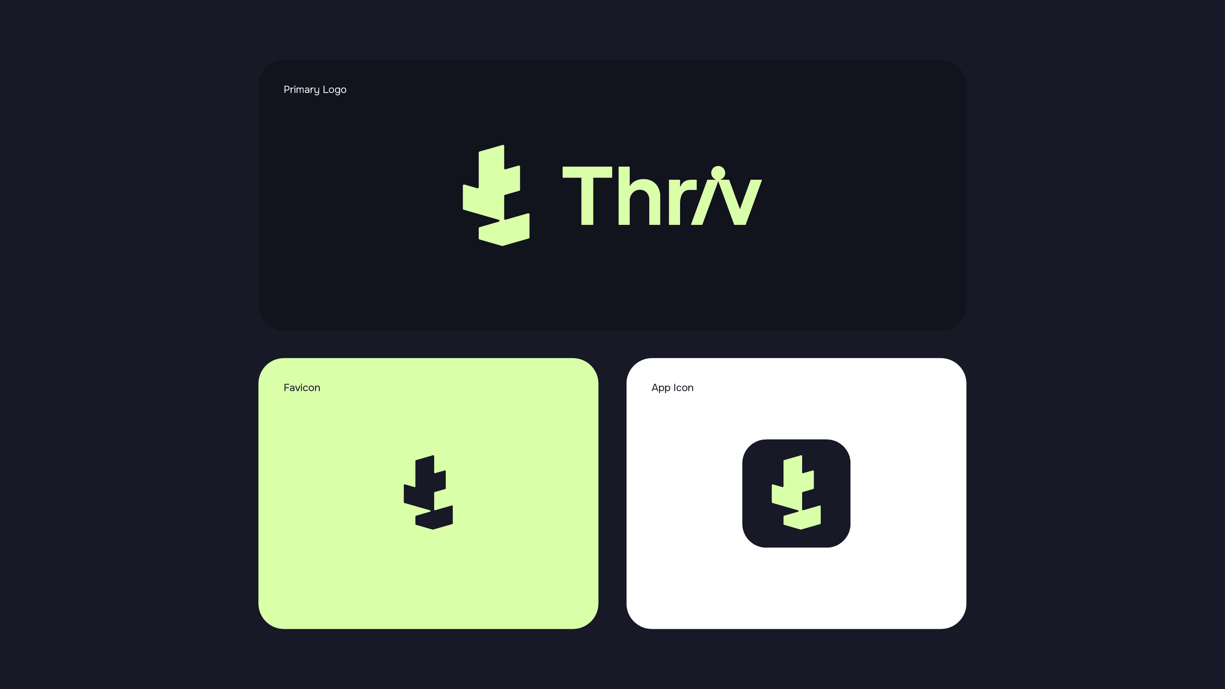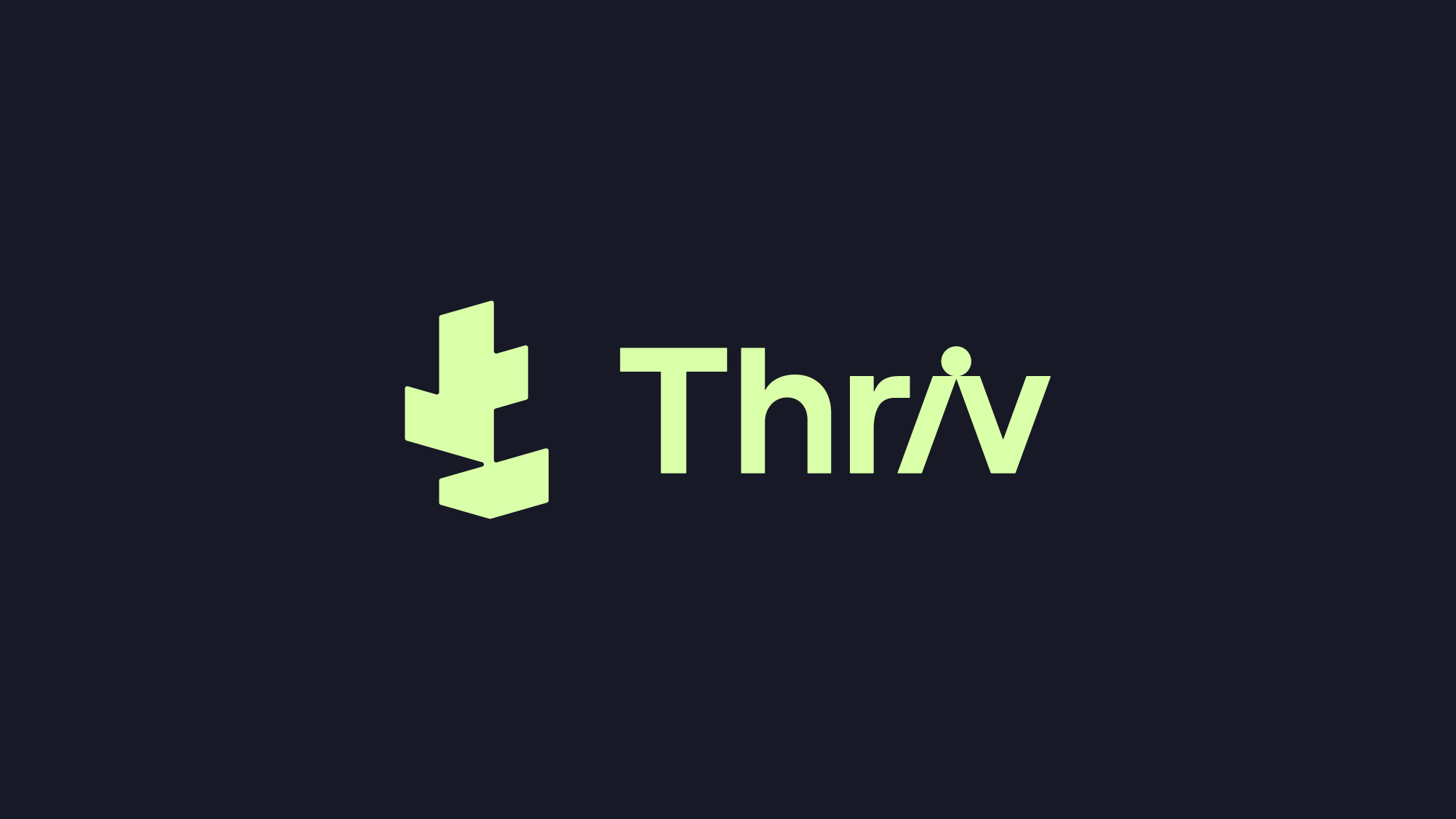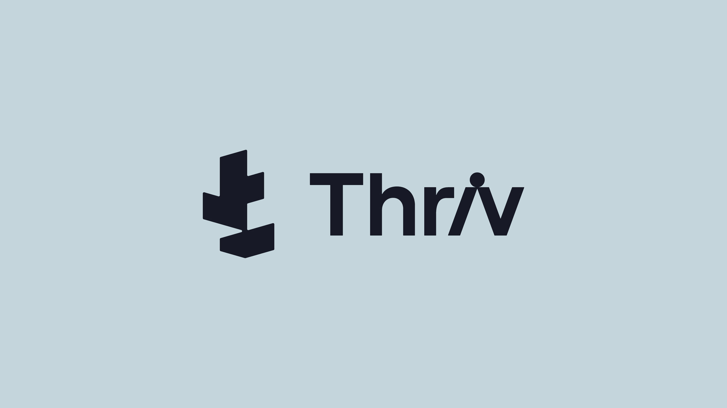 To express connection and support, the “i” in Thriv is inclined toward the “v,” creating a visual moment of interaction between the letters. The dot above the “i” appears to balance across both letters, reinforcing the sense of harmony and shared progress.